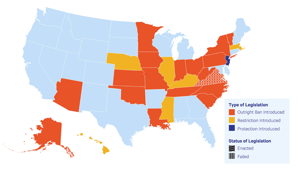 This map shows the policy landscape as of March 2, 2026.