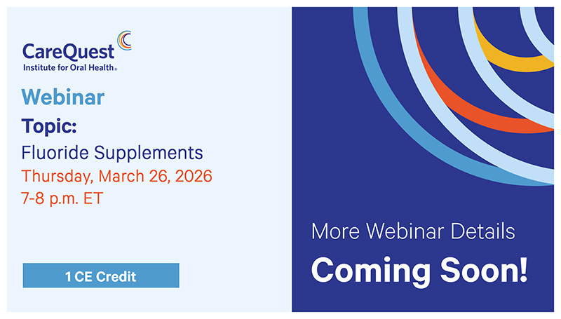 Join leading experts and researchers as they explore some of the most pressing topics facing oral and overall health today. CareQuest Institute webinars are free and available as recordings for your convenience.