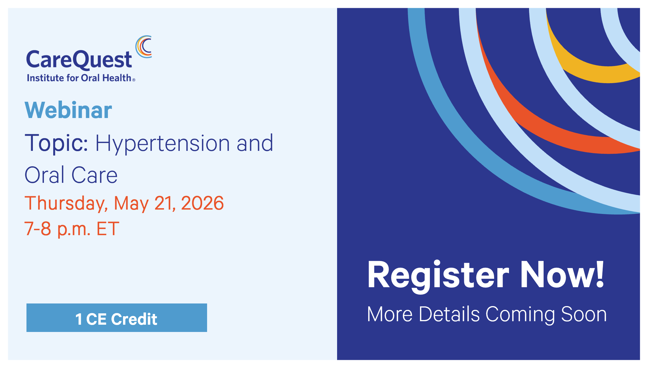 Join CareQuest Institute for a webinar that will explore the concept of medical–dental integration, with a focus on how dental and medical professionals can share expertise, build relationships, and work together more effectively. After reviewing key connections between oral and overall health, expert speakers will highlight practical, relationship‑driven strategies—such as lunch‑and‑learns, grand rounds, and warm handoffs—that support collaboration, improve care coordination, and strengthen referral networks across a range of practice settings.Â