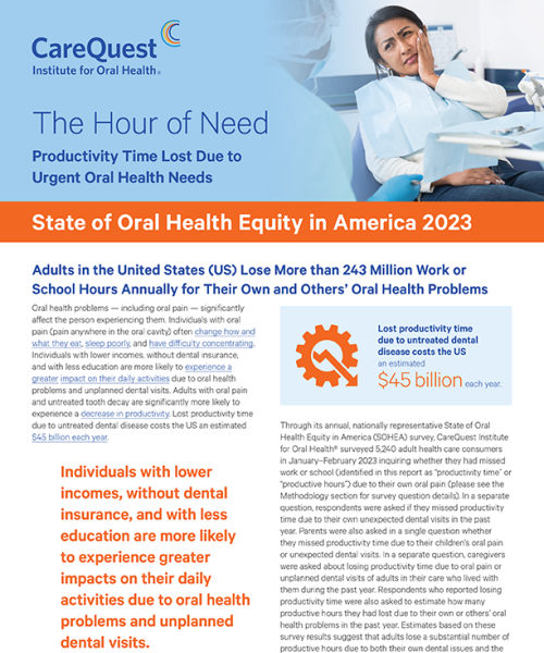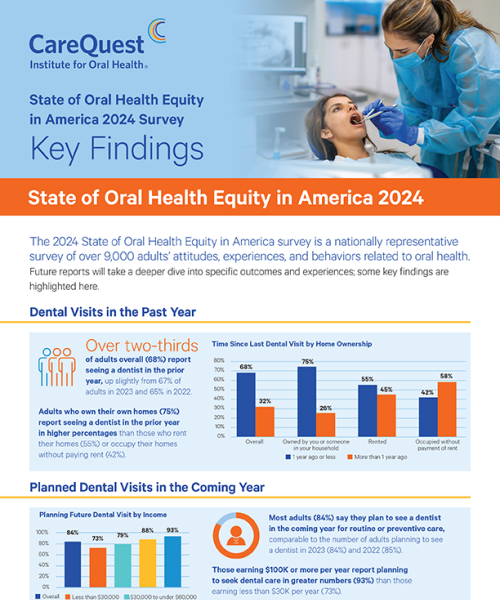 The State of Oral Health Equity in America is the largest nationally representative survey focused exclusively on adults’ knowledge, attitudes, experiences, and behaviors related to oral health.