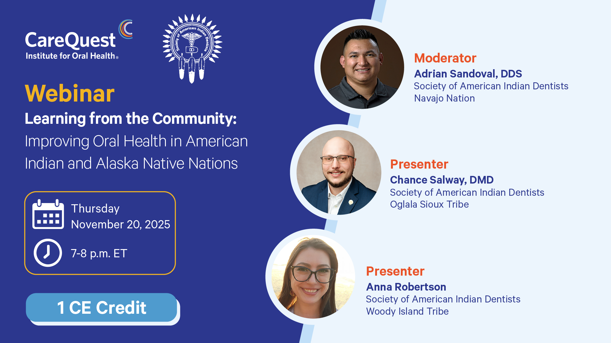 During Native American Heritage month, join CareQuest Institute and the Society of American Indian Dentists for a webinar that will explore the intersection of tribal sovereignty, culture, and oral health.
