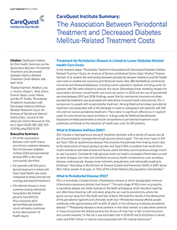 In this article in The Journal of the American Dental Association, CareQuest Institute researchers found that overall health care costs were reduced in both Medicaid patients (14% less) and commercially insured patients (12% less) with diabetes who had received periodontal treatment within the previous two years.